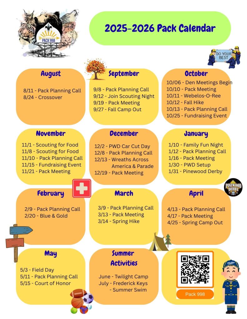 Below is the Pack’s planned activities for 2025/2026 as of 8/11.